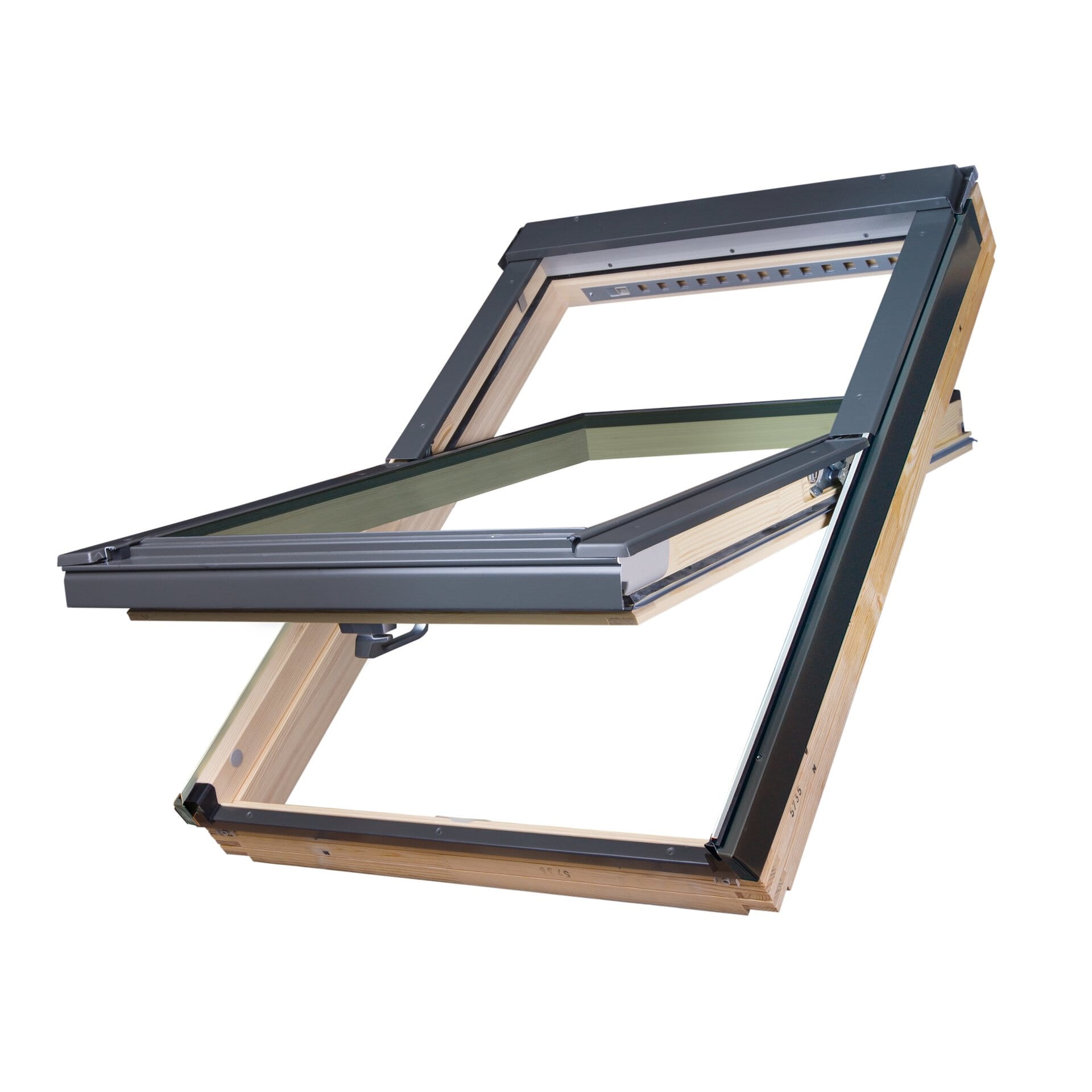 Okna obrotowe FTP to bogato wyposażone okna dachowe. Zawias umieszczony w połowie wysokości okna, umożliwia obrót skrzydła i pozostawienie go w pozycji otwartej. Skrzydło można również obracać wokół osi o 180° i zablokować je zasuwką ryglującą, co pozwala na wygodne i bezpieczne mycie zewnętrznej szyby okna. Okna obrotowe obsługiwane za pomocą klamki z dwustopniowym mikrouchyleniem, umieszczonej w dolnej części skrzydła.